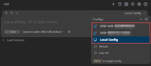- Agent Selector: Choose a pre-configured or custom agent tailored to your task (e.g., “Database Expert”, “Vue Frontend Specialist”).