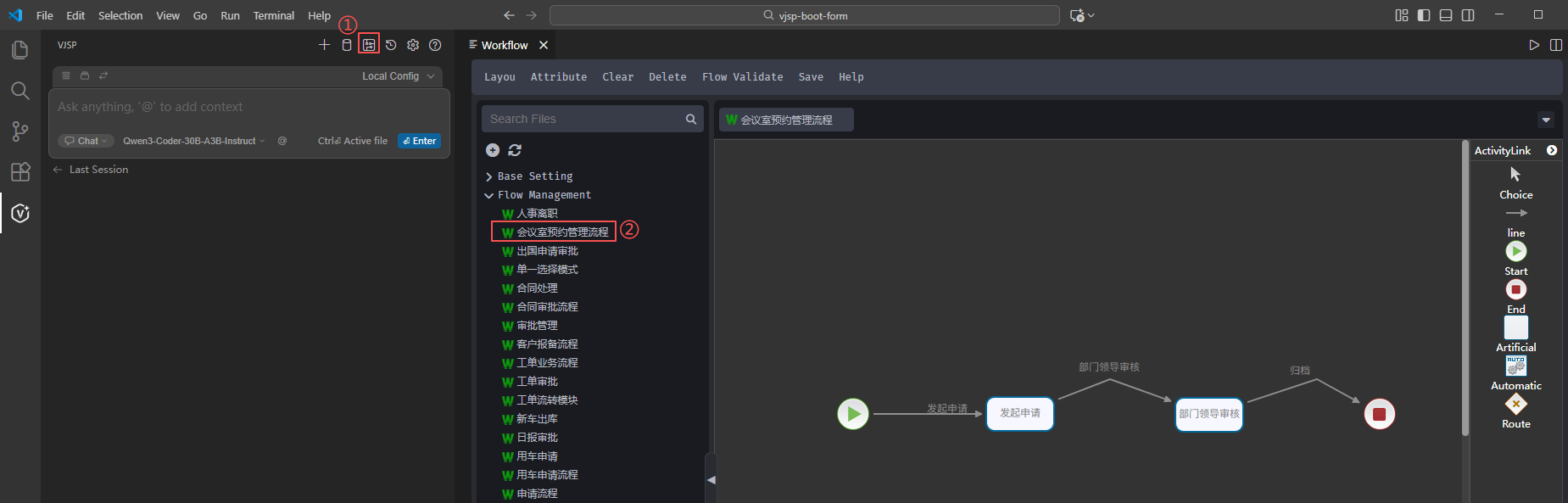Choose an existing project workflow to guide AI code generation (e.g., for form or API development aligned with process logic).