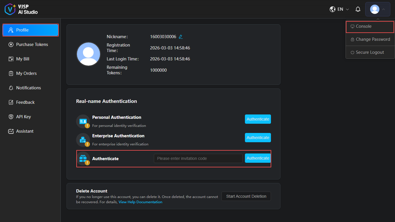 In the real-name authentication section, find the Invitation Code Verification entry.