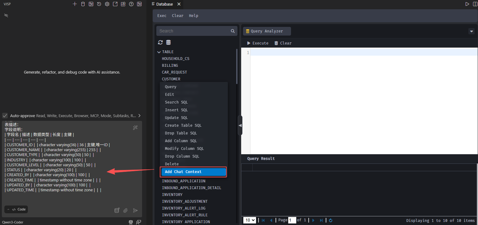 The database table schema is added to the input box.
