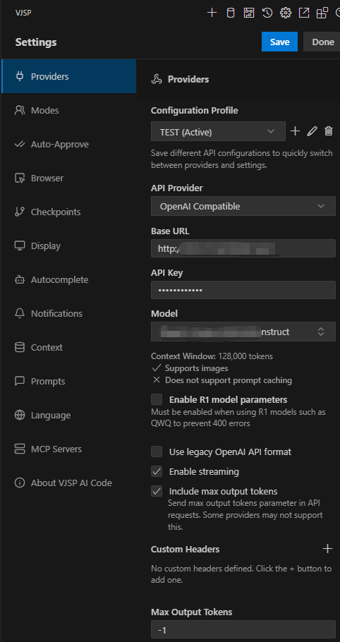- API Provider: Select OpenAI Compatible;