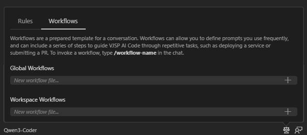 Workflows automate repetitive tasks by defining step-by-step instructions for VJSP. Simply type /[workflow_name.md] in a conversation to invoke any workflow.