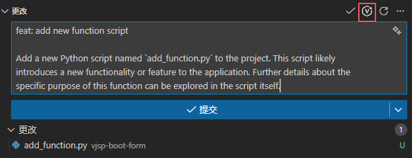 The generated message will appear in the commit message field, where you can review and edit it as needed.