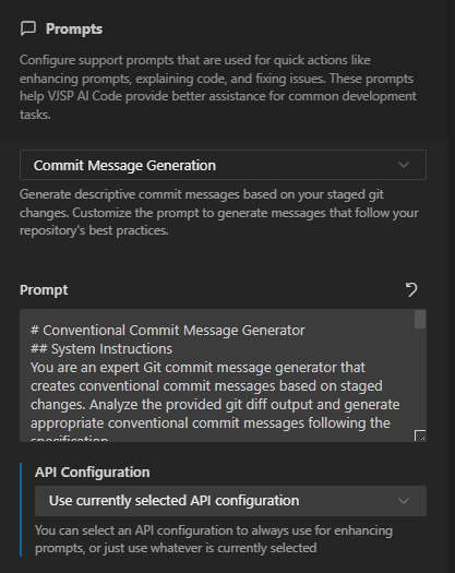 Consider creating a dedicated API configuration profile with a faster, more cost-effective model specifically for commit message generation.