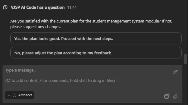 This feature streamlines interactions whenever VJSP requests clarification, enabling you to guide tasks effectively with minimal effort.