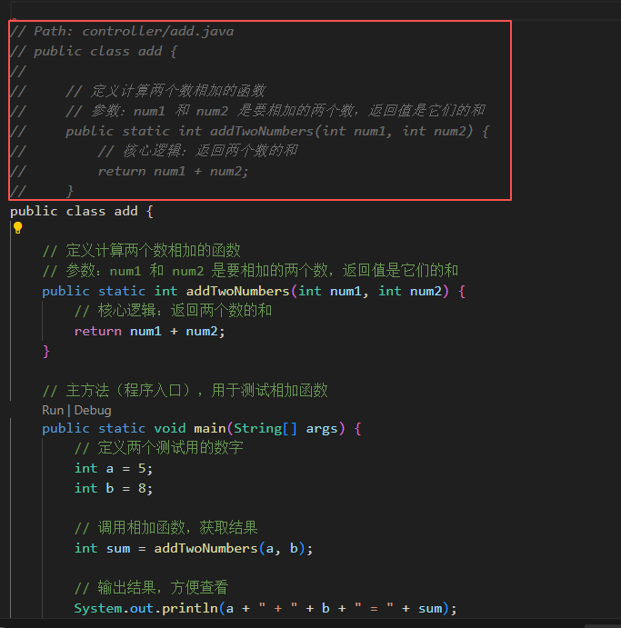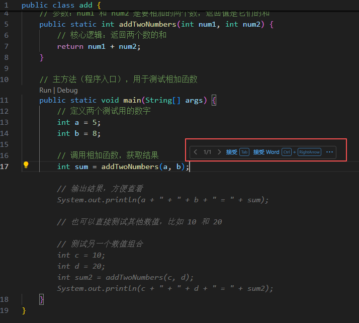 Scenario 2: Add a comment at the target position, then press Enter. VJSP Assistant will interpret the comment and directly generate the corresponding implementation code.