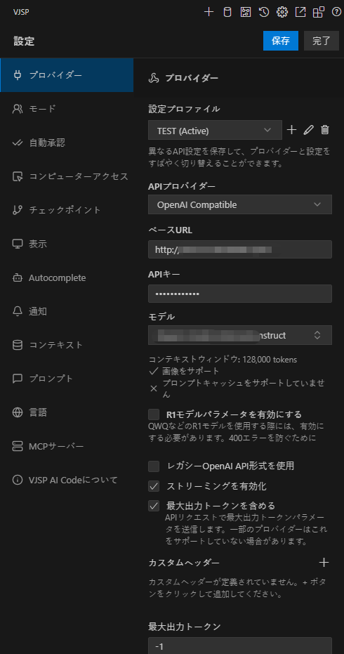 - API プロバイダー: OpenAI Compatible を選択してください。
