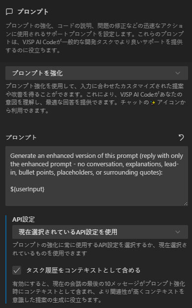 「プロンプトの強化」機能はカスタマイズ可能なプロンプトテンプレートを使用します。このテンプレートを修正して、特定のニーズに合わせて強化プロセスを調整できます。