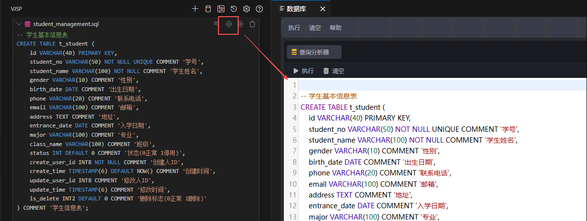 数据库图标:点击可打开数据库设计器,支持数据库操作可视化。