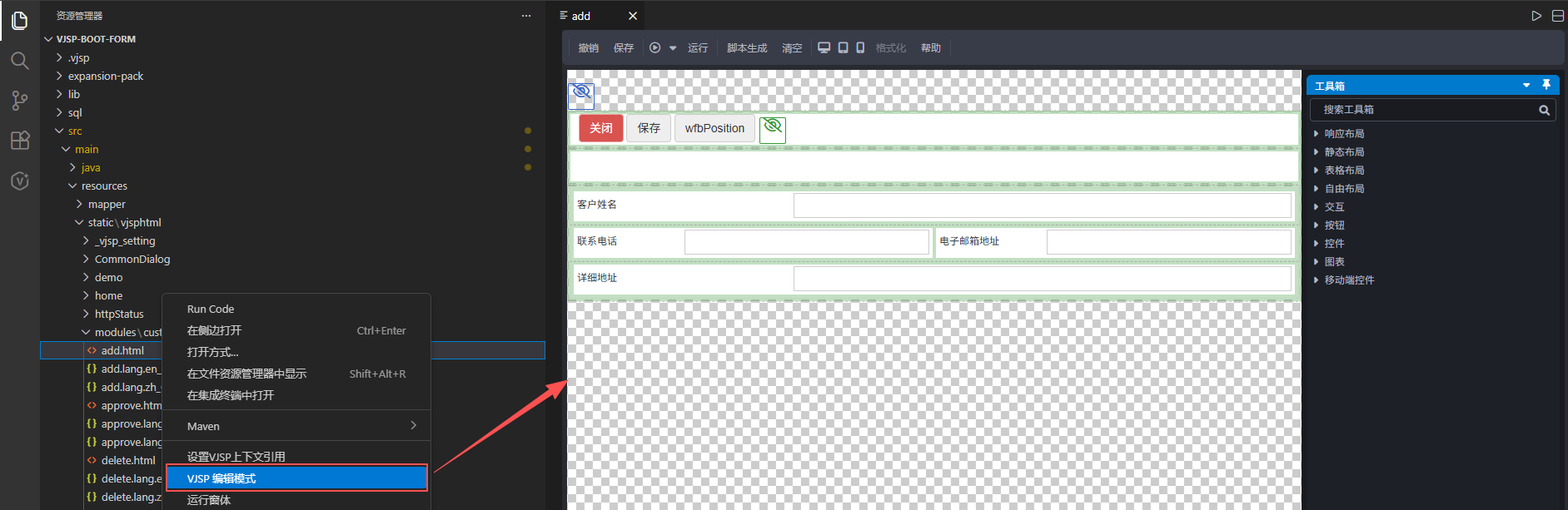 是用户与 VJSP 交互的核心区域: