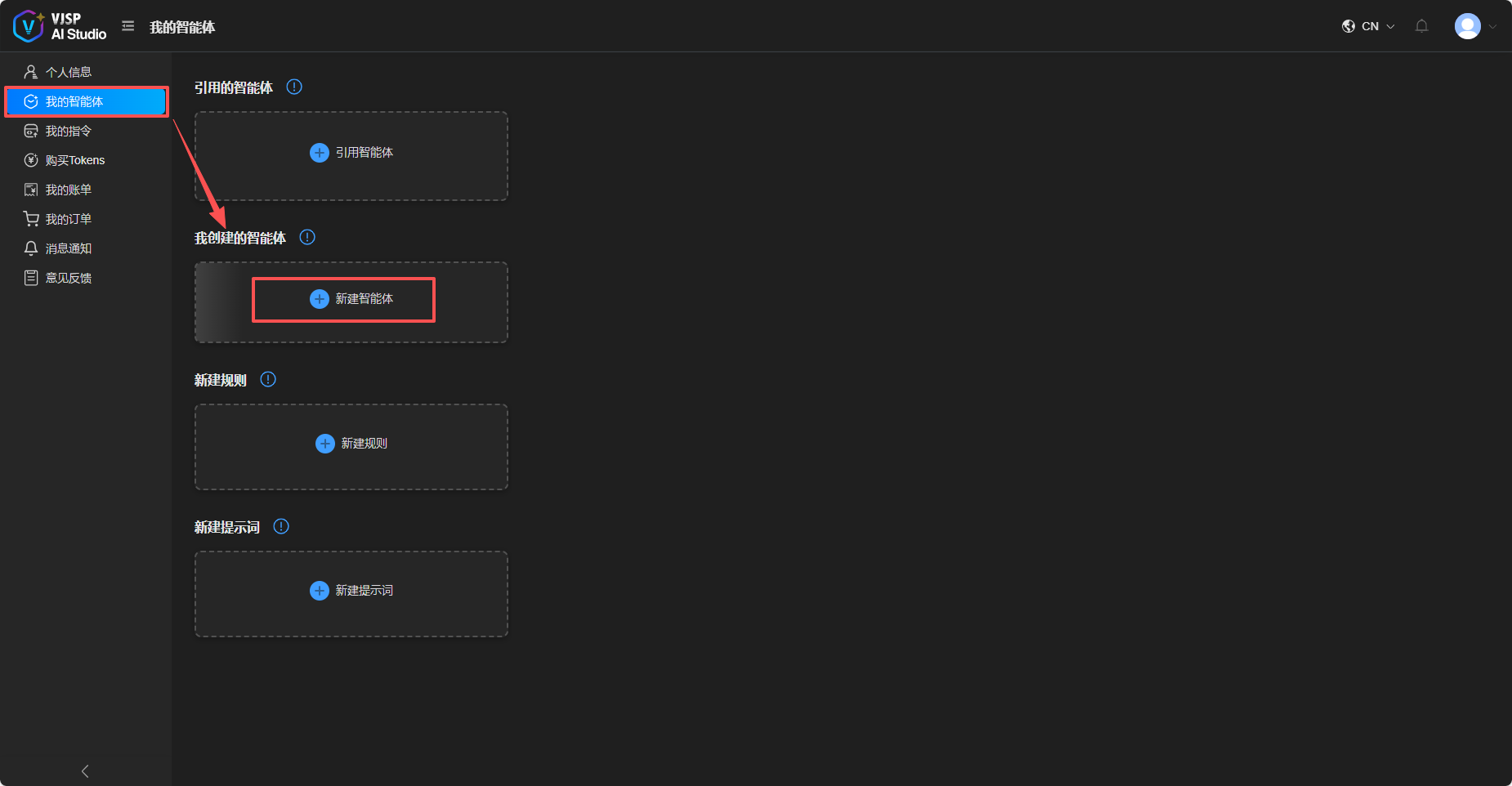- 在“我的智能体”页面,点击 「新建智能体」, 配置属于自己的智能体。