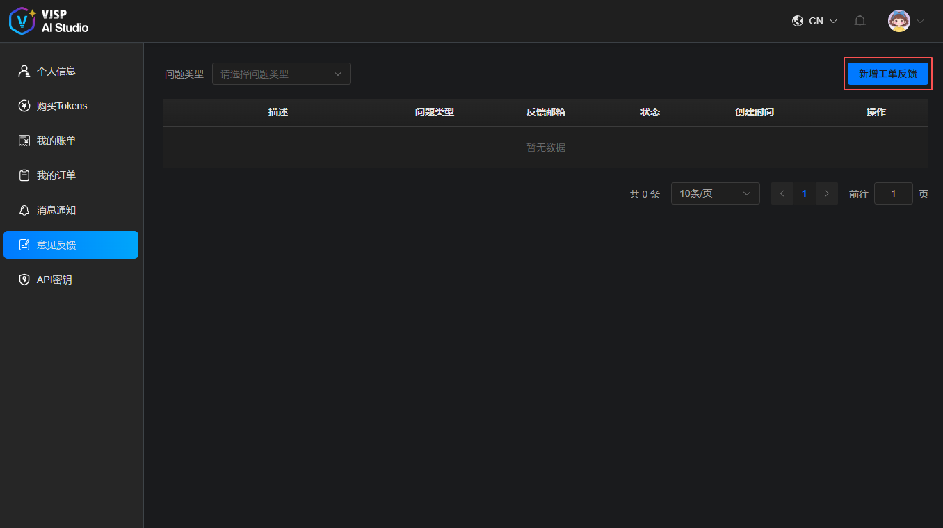 点击【新增工单反馈】按钮。