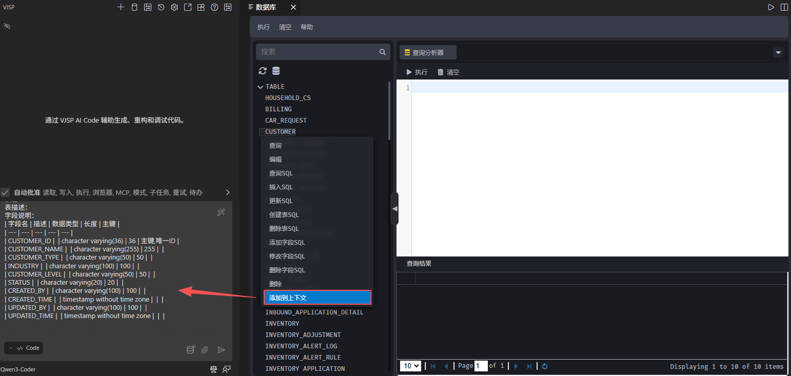 数据库表结构添加至输入框内。