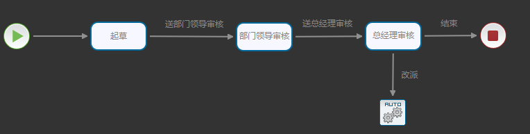 例如:流程到总经理审核时,可以派发给其他人员审核,系统流程如下图: