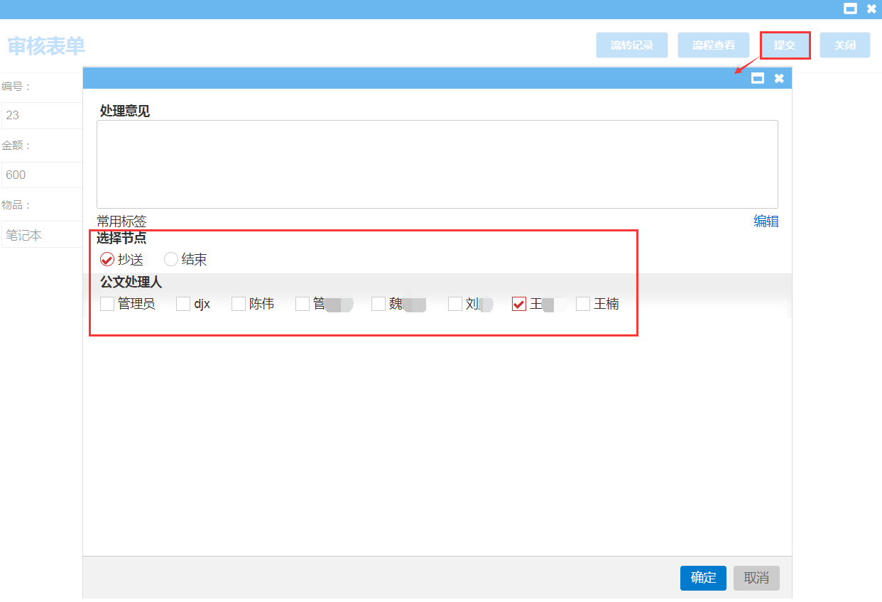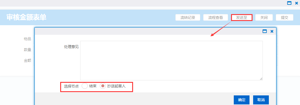 抄送模式是将当前审核窗体抄送给其他指定人员或者起草人传阅