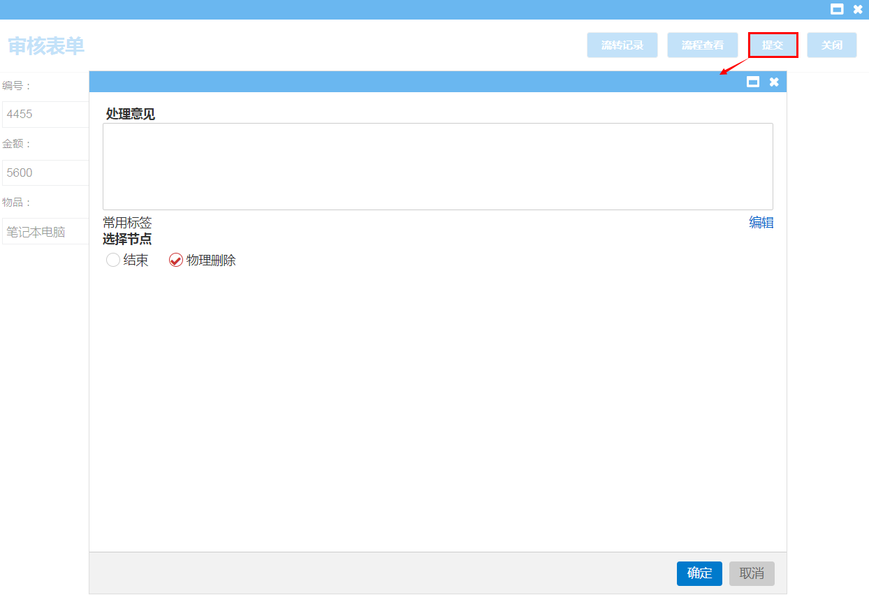 物理删除模式是将当前审批单据直接从数据库中删除,无法再查到此数据。