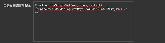 自定义回调事件脚本:通过编写脚本,实现回调事件,如:审核时,可选择系统中所有人员,设置如下图: