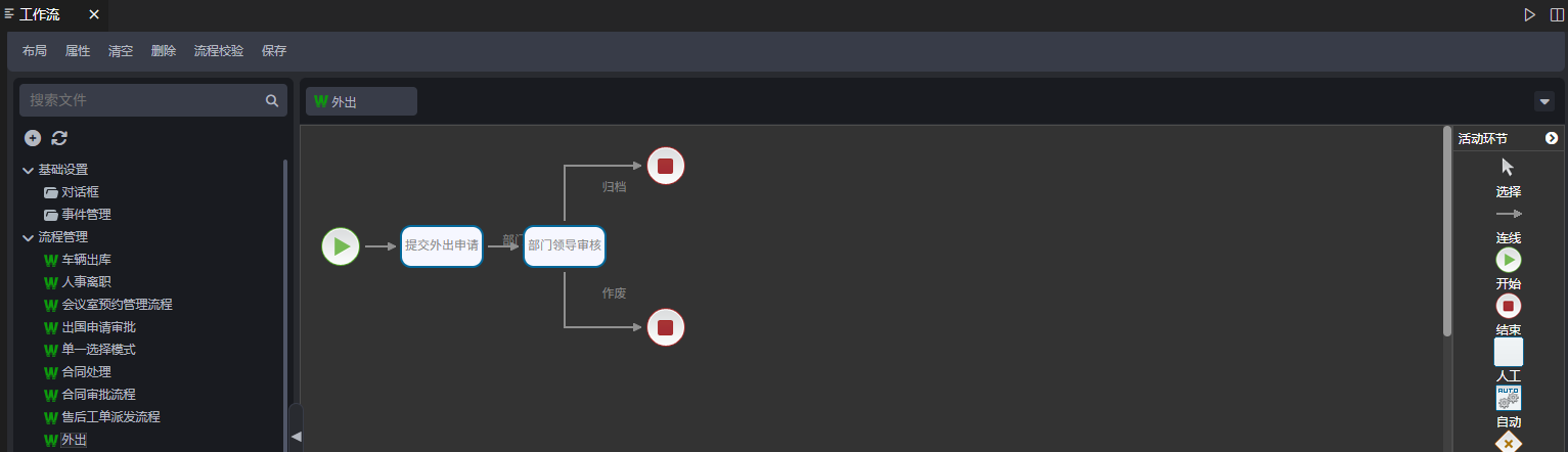 删除: 选中流程控件再点击【删除】,将删除此控件。