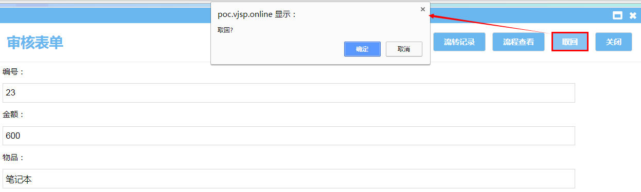 效果如下: 登录应用平台,点击窗体进行流程审核,运行到“总经理审核”节点,提交时,选择退回上一级,如下图:
