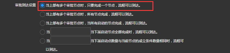 - 任一审批人通过,则节点通过:当前节点有一个或者多个人员执行审批,但是只要有一个审批人完成审批,窗体即流转到下个节点。