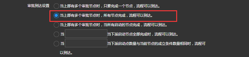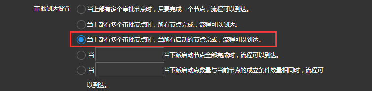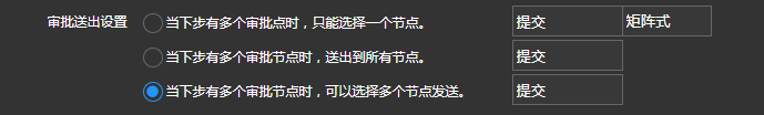 - 所有审批人通过,则节点通过 :当前节点有一个或者多个人员执行审批,必须所有审批人完成审批,窗体即流转到下个节点。