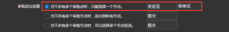- 设置连线的操作类型为后退审批,系统在“部门主管审核”节点生成退回选项,效果如下图: