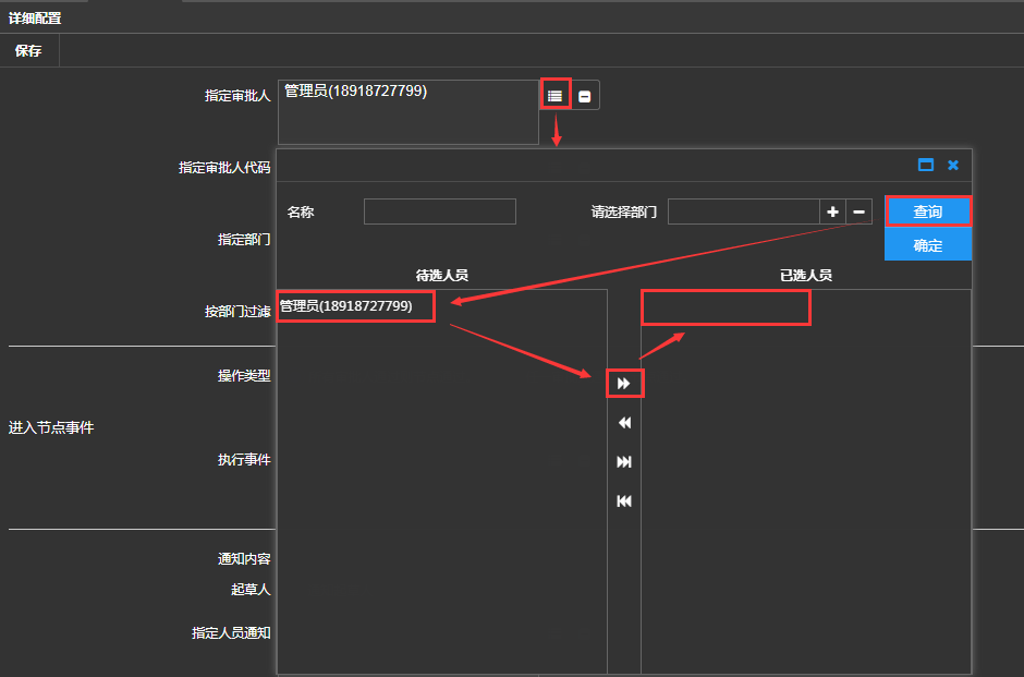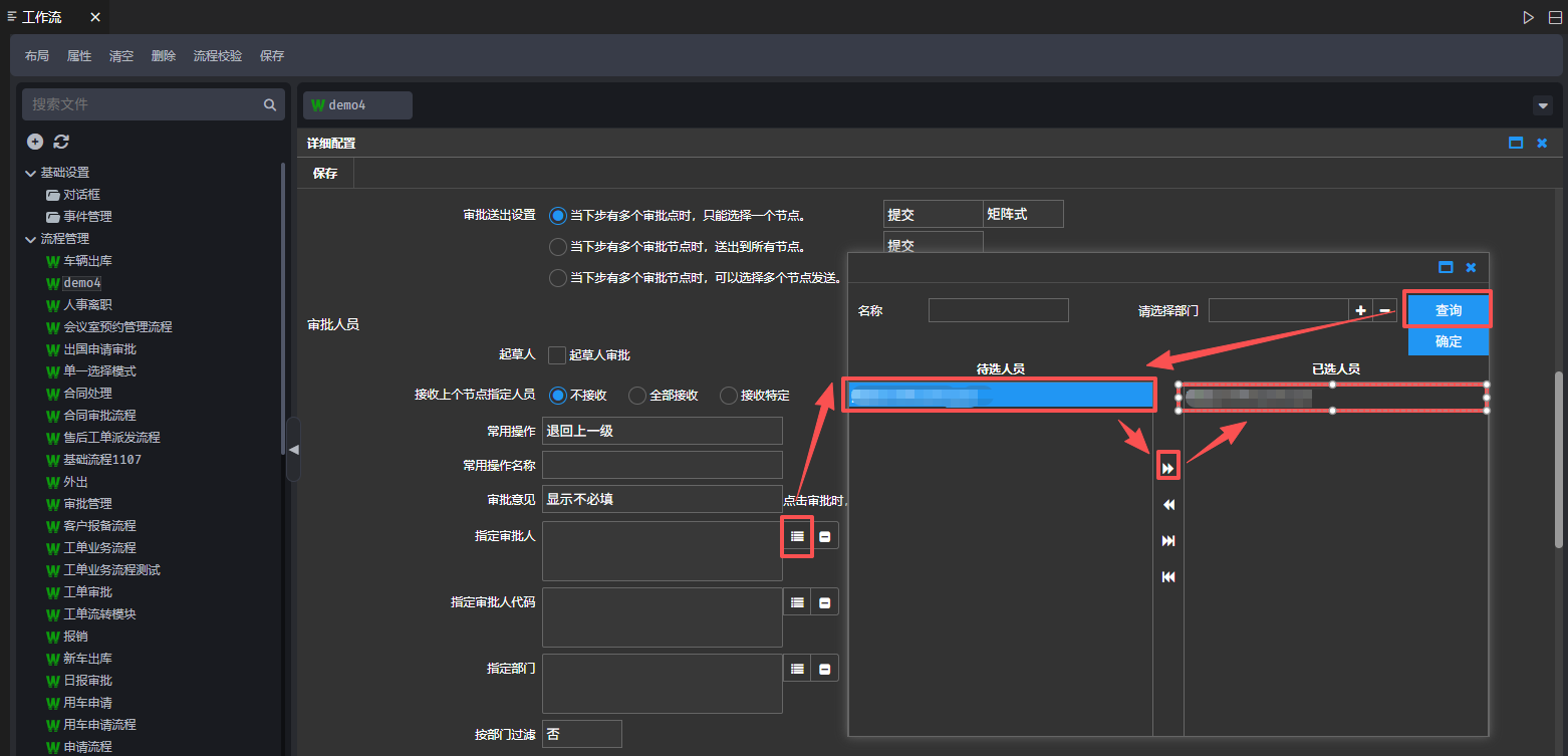设置当前节点具体审批人员(审批人可以设置1个或多个),设置如下图: