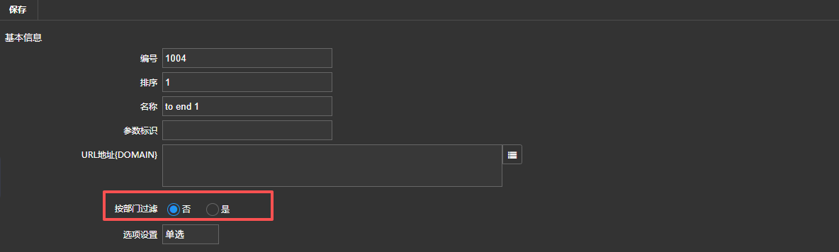 按部门过滤(是/否/待选) :如果选择“是”,则当前节点审批人员根据起草人上级部门来取得,“否”则代表不管起草人是什么部门的都由指定审批人审批,“待选”则是可以选择部门,详细设置详见按部门过滤章节。