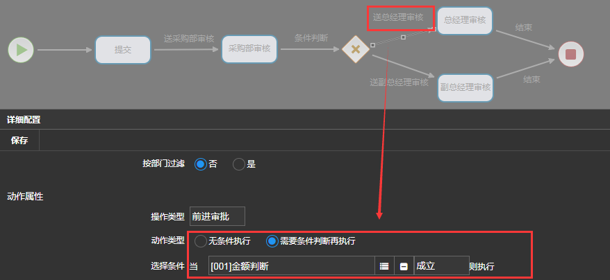 - 设置副总经理审核条件(金额<10000) ,如下图: