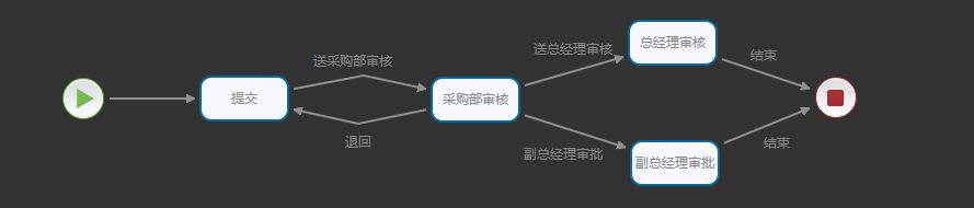 应用案例: 在领导审批节点控制“退回”和“结束”功能按钮的排列顺序,流程如下图:
