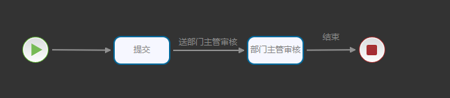 - 在“部门主管审核”与“提交”节点设置连线,箭头方向由“部门主管审核”指向“提交”。