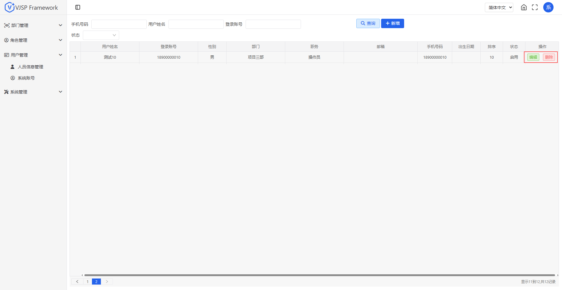 修改人员基本信息;删除人员信息,删除前需确认未绑定启用账号。