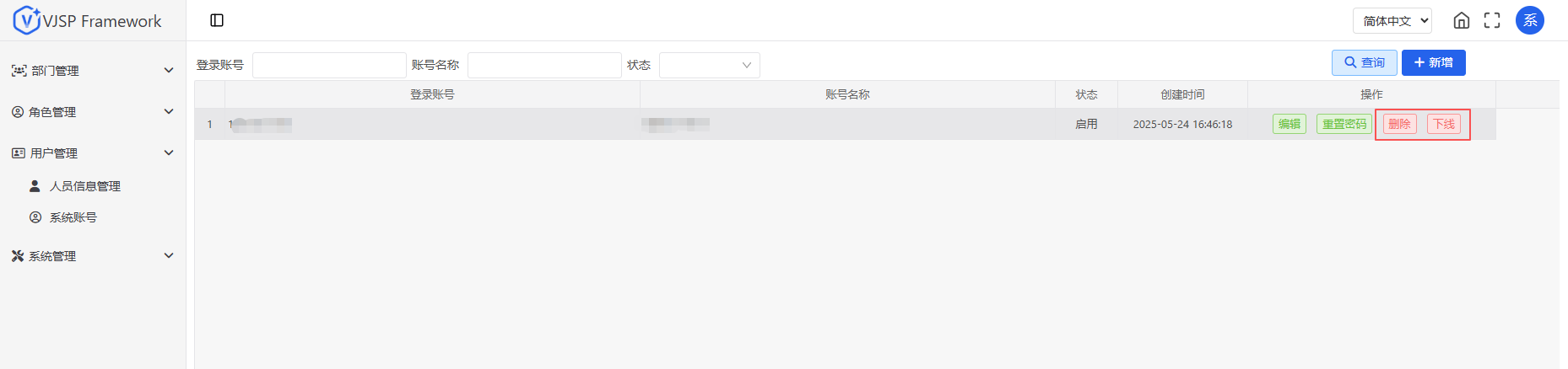 进入【用户管理 - 系统账号】页面,点击“新增”。设置登录账号(唯一)、账号名称、初始密码,并分配至少一个角色。