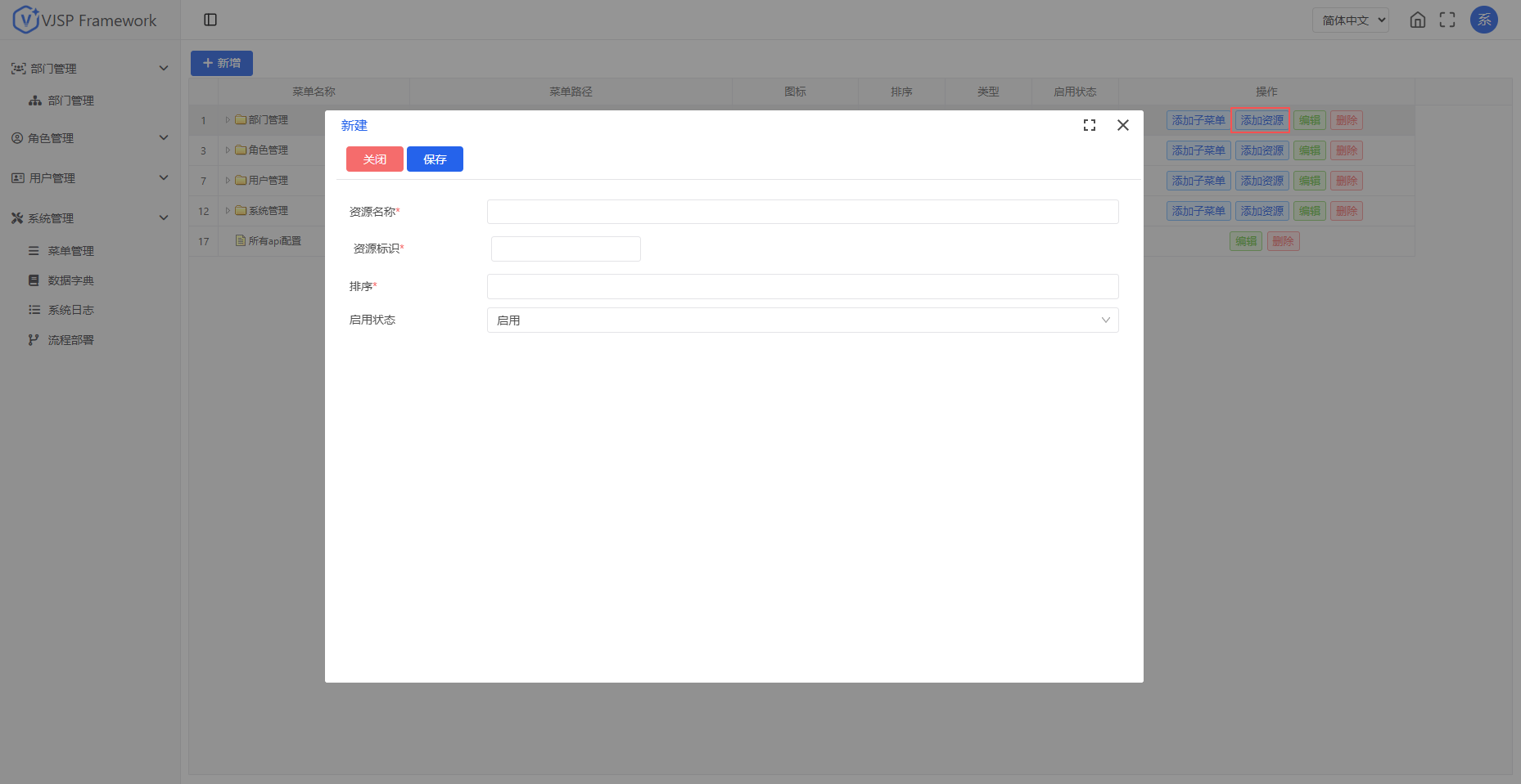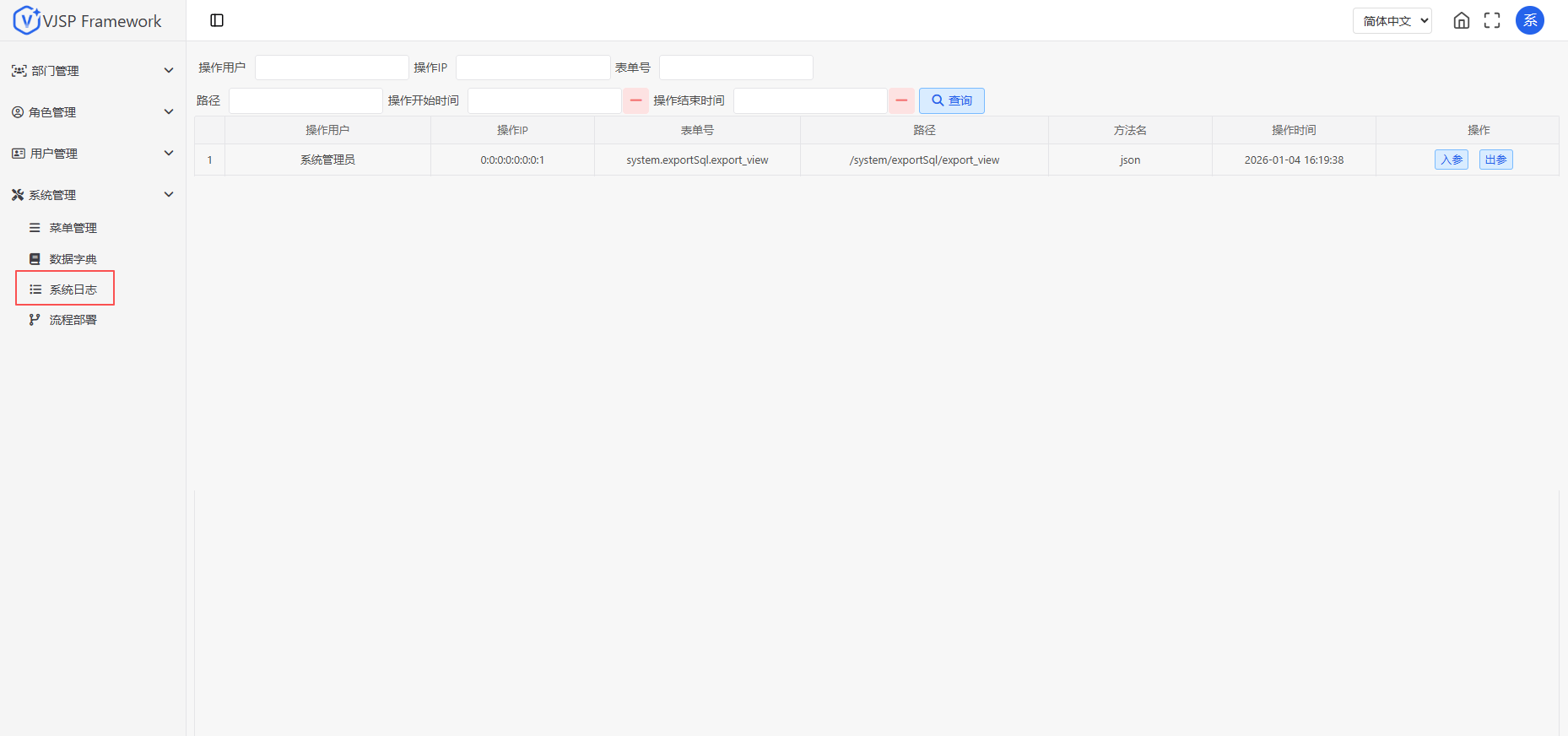 VJSP 框架内置了一套完整的企业级基础功能模块,涵盖用户管理、组织架构、权限控制、数据字典、系统日志等核心能力。开发者基于该框架构建应用时,无需重复开发通用功能,只需聚焦于自身业务逻辑与数据模型的设计与实现,大幅提升开发效率与系统一致性。
