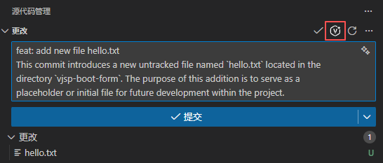 生成的信息将出现在提交信息字段中,你可以根据需要进行审查和修改。