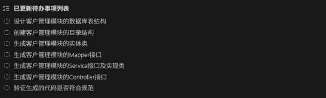 核心理念: 再也不会遗漏复杂的开发任务。任务待办事项列表创建交互式、持久的清单,直接嵌入在你的聊天界面中。