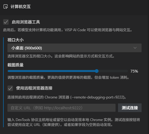 目的:主开关,使 VJSP 能够使用 Puppeteer 控制的浏览器与网站交互。