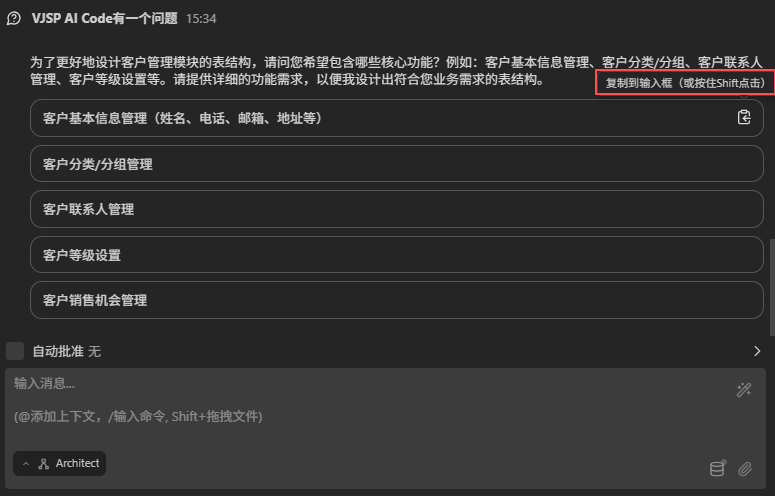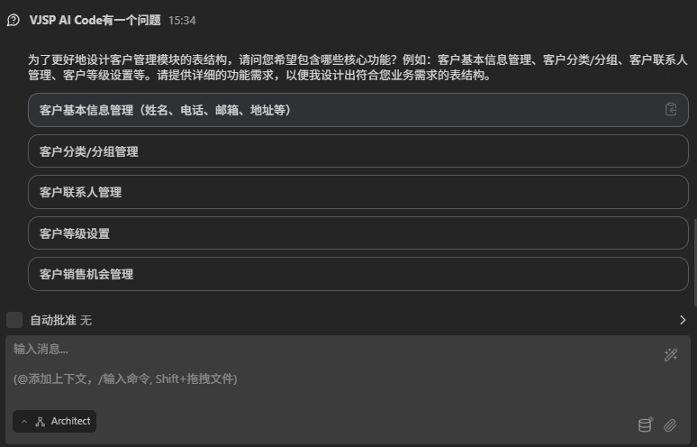 此功能简化了 VJSP 需要澄清时的交互,让您能够以最少的精力有效指导任务。