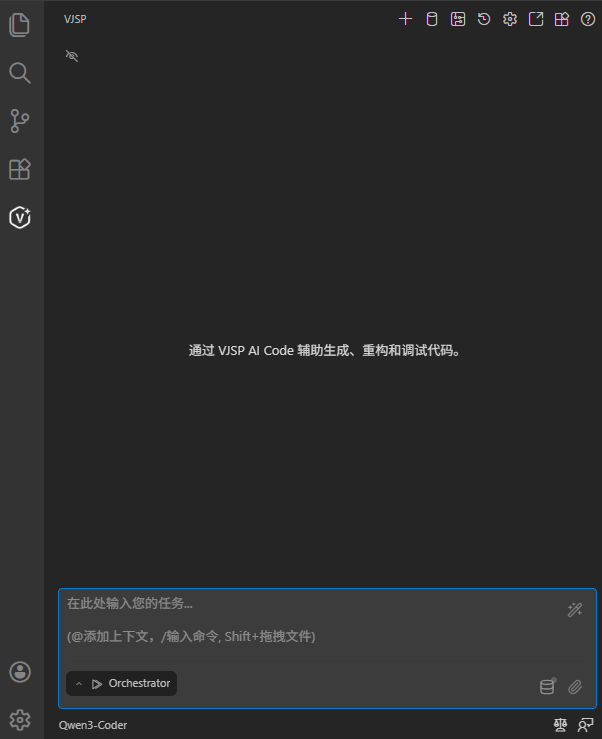 在 VS Code 或 IDEA 的侧边栏中找到 VJSP 图标。单击它以打开聊天面板。